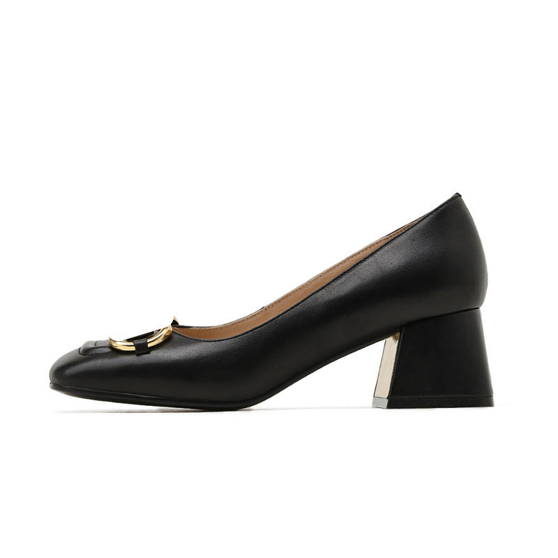 2023 جديد حذاء فرنسي هورسبيت فردي سميك عالي الكعب صغير مربع الرأس ضحل حذاء ماري جين حذاء اصبع القدم صنادل نسائية