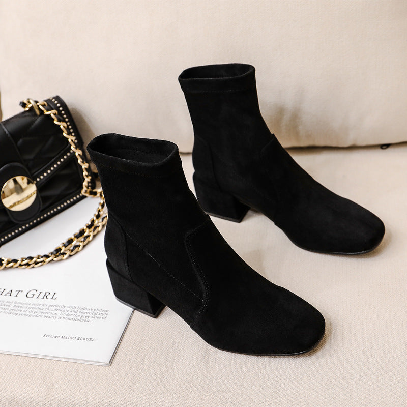 أحذية الأطفال 2023 موديلات خريف في الأنبوب ، قدم واحدة ، مقود القدم ، أحذية قصيرة ، سميكة مع أحذية مرنة ، رقيقة ، رقيقة