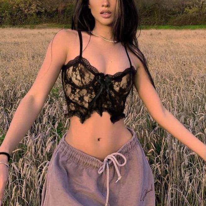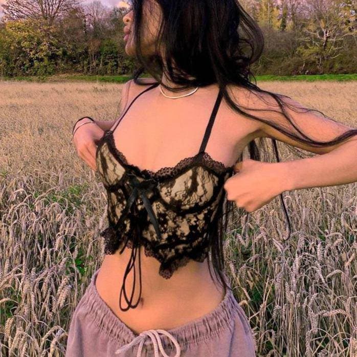 إي جيرل قوطي دانتيل رقبة على شكل V كامي