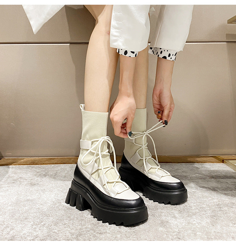 المحطة الأوروبية مارتن الأحذية Yinglan الرياح المرأة جولة رئيس الجوارب الأحذية سميكة أسفل أشرطة أحذية كعكة الصنوبر تظهر أحذية مرنة رقيقة