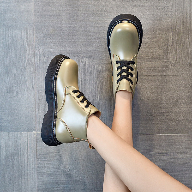 حزام جلد سميك من الأسفل BV Martin أحذية نسائية كبيرة جديدة تزيد من الأحذية وأحذية الكاحل النسائية