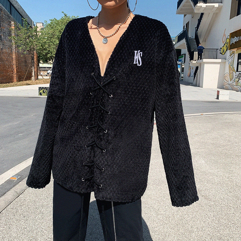 Amazon Winter Damen neue langärmlige Strickjacke mit Band und V-Ausschnitt, lockere, wilde, dünne Jacke